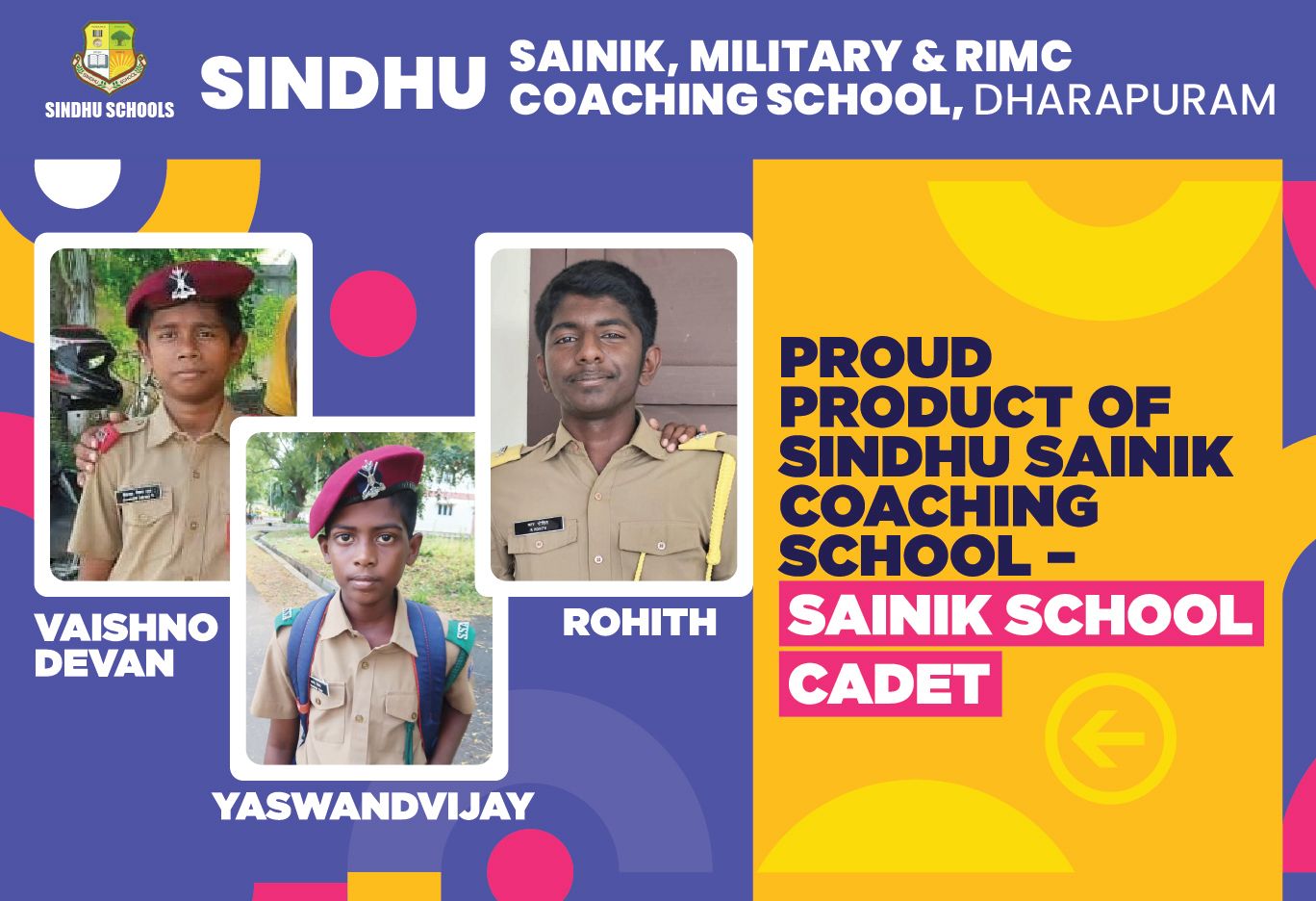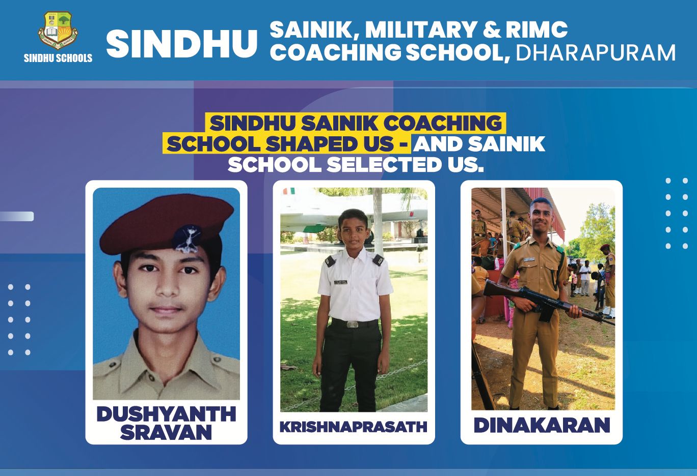 The school laid a strong foundation in all spheres of my life. It had created a major turning point in my life. It made me understand that nothing is impossible in this world. I keep it simple with these 3 sentences. If I continue to write about the staff, school and the way I was groomed in the shortest duration of 1 year, then I will land up in writing a book on life at Sindhu school. Whenever someone asks me about the best SAINIK coaching centers in India, I would proudly declare it’s SINDHU Sainik coaching center.
